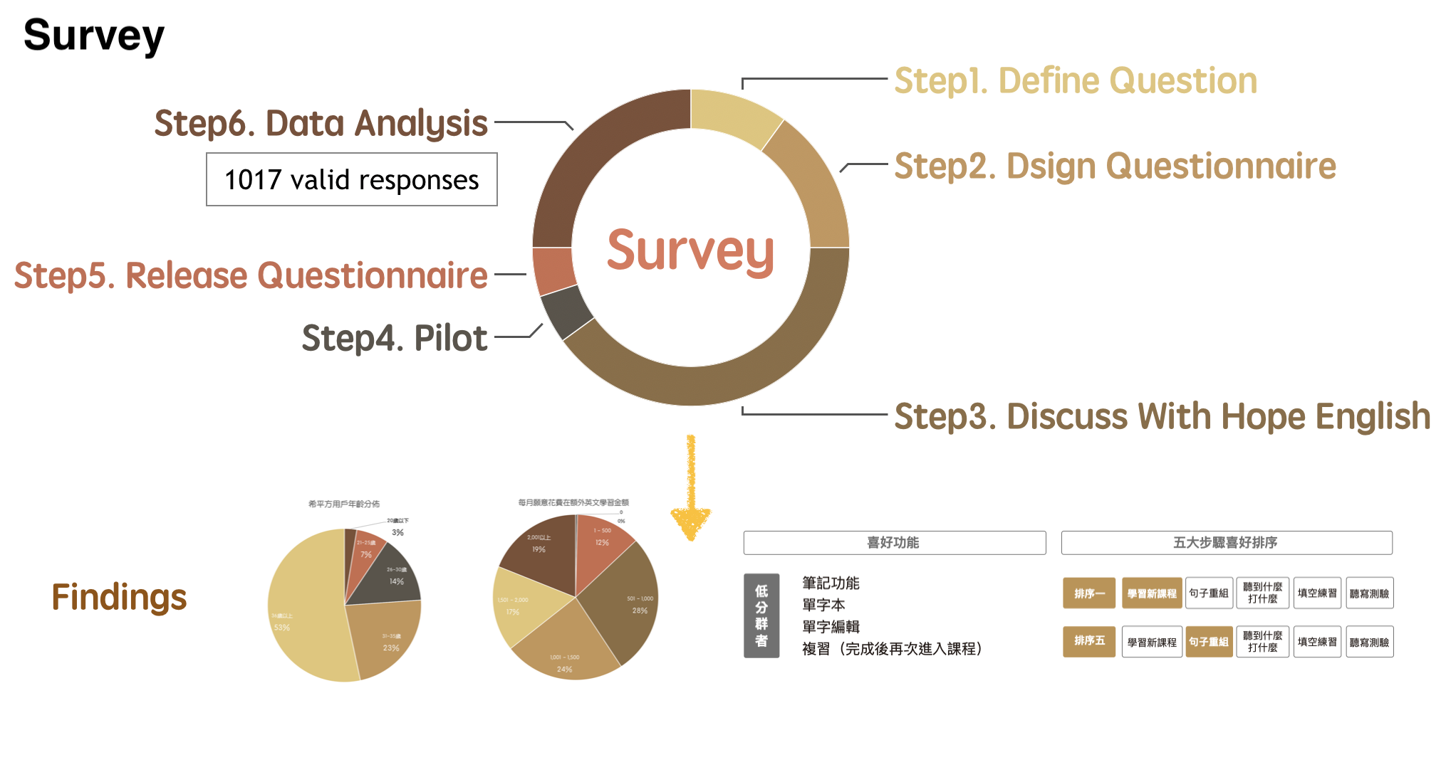 A Survey was conducted following qualitative analysis to further collect the quantitative data. We collected participants' characteristics, attitudes, and behaviors in online language learning activities. Furthermore, we collect participants' self-report usability evaluation of our target product using the System Usability Scale (SUS).
